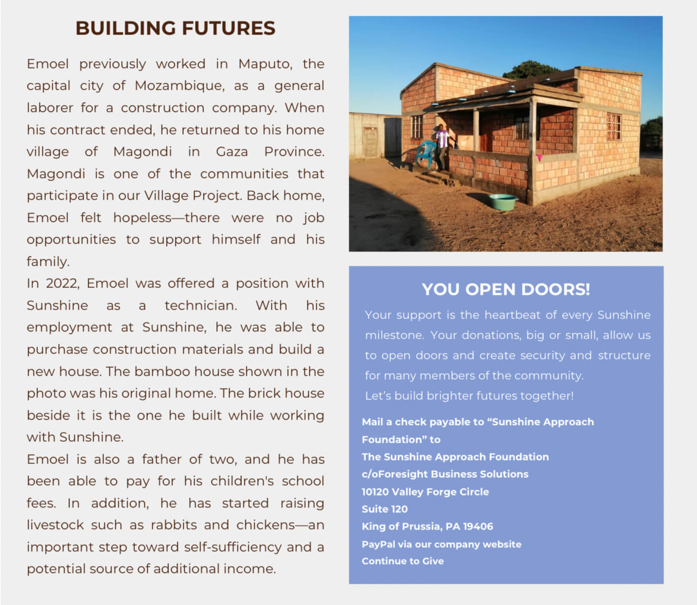 • A new chapter for our Sunshine Children